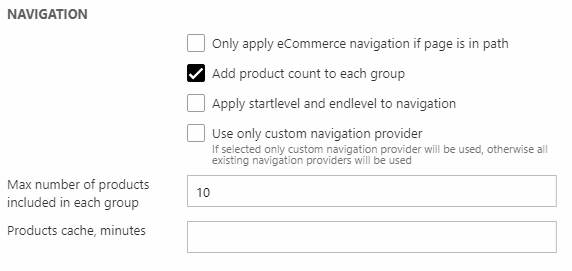 - Disable product count for backend Ecommerce tree to reduce data traffic load and increase performance when navigating the Ecommerce tree