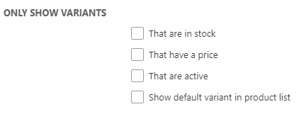 You can also choose to show the default variants in the product list instead of the main product by checking Show default variant in product list.