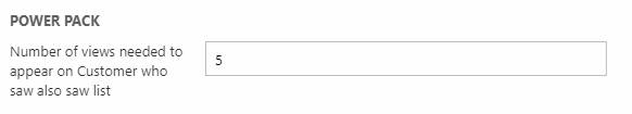 With the Power pack settings (Figure 11.1), you can set a minimum number of views a product should have to appear on a "Customer who saw this also saw this"-list.