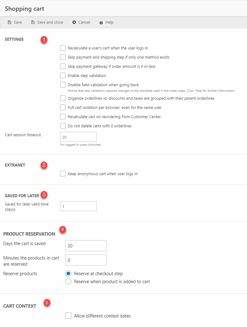 | 4 | Days the cart is saved | - | This setting specifies how many days the cart is saved for if not fully completed |