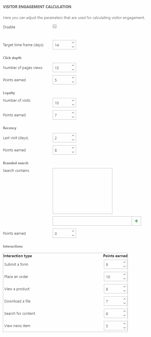 - You can disable the Engagement Index completely – if you are not using the Leads tool, this may result in a minor performance improvement on your website.