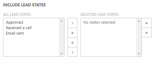 You can specify one or more lead states to include in the lead email. This is useful for creating complex lead state workflows, where you send e.g. approved leads to one team, and leads which are in other states to another team.