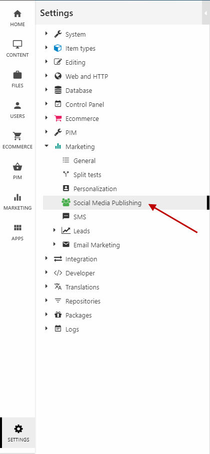 To set up a publishing channel go to Settings > Marketing > Social Media Publishing (Figure 6.1).