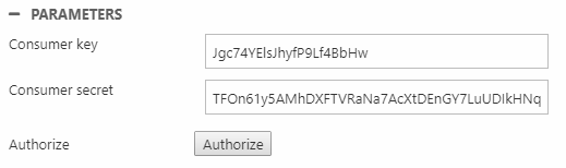 Parameters are social media specific, and based on the authentication process for the social media in question.