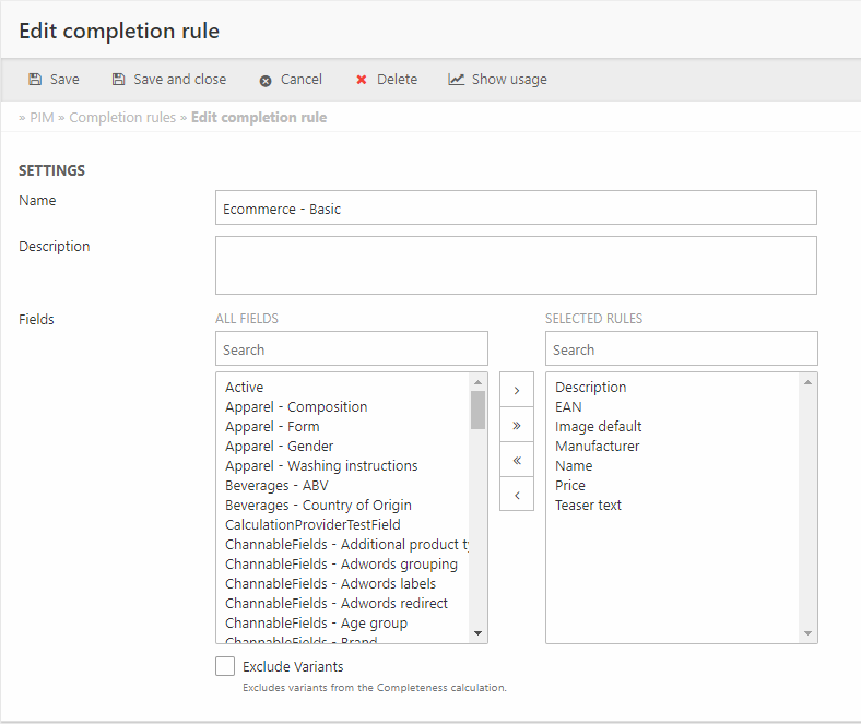 - The Completeness section allows you to enable the Do not publish incomplete products checkbox, which is used to ensure that products that are not 100% complete for a channel cannot be published to that channel.