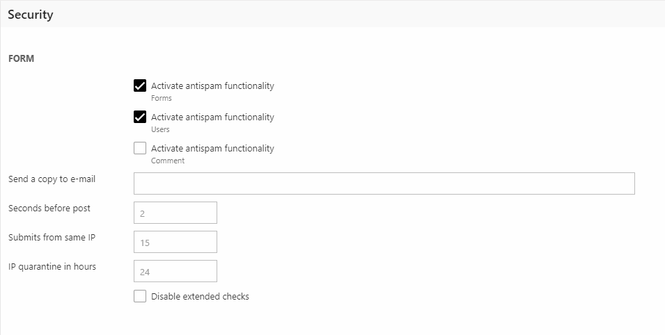 - Form antispam settings