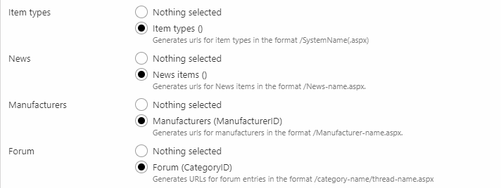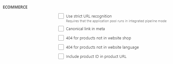 The Ecommerce customized URL settings (Figure 6.1) allow you to further control how custom URLs for Ecommerce content works.
