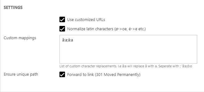In the following sections we will go through your options when configuring custom URLs – unless explicitly mentioned, all these options are available via the Customized URLs tool found under Settings.