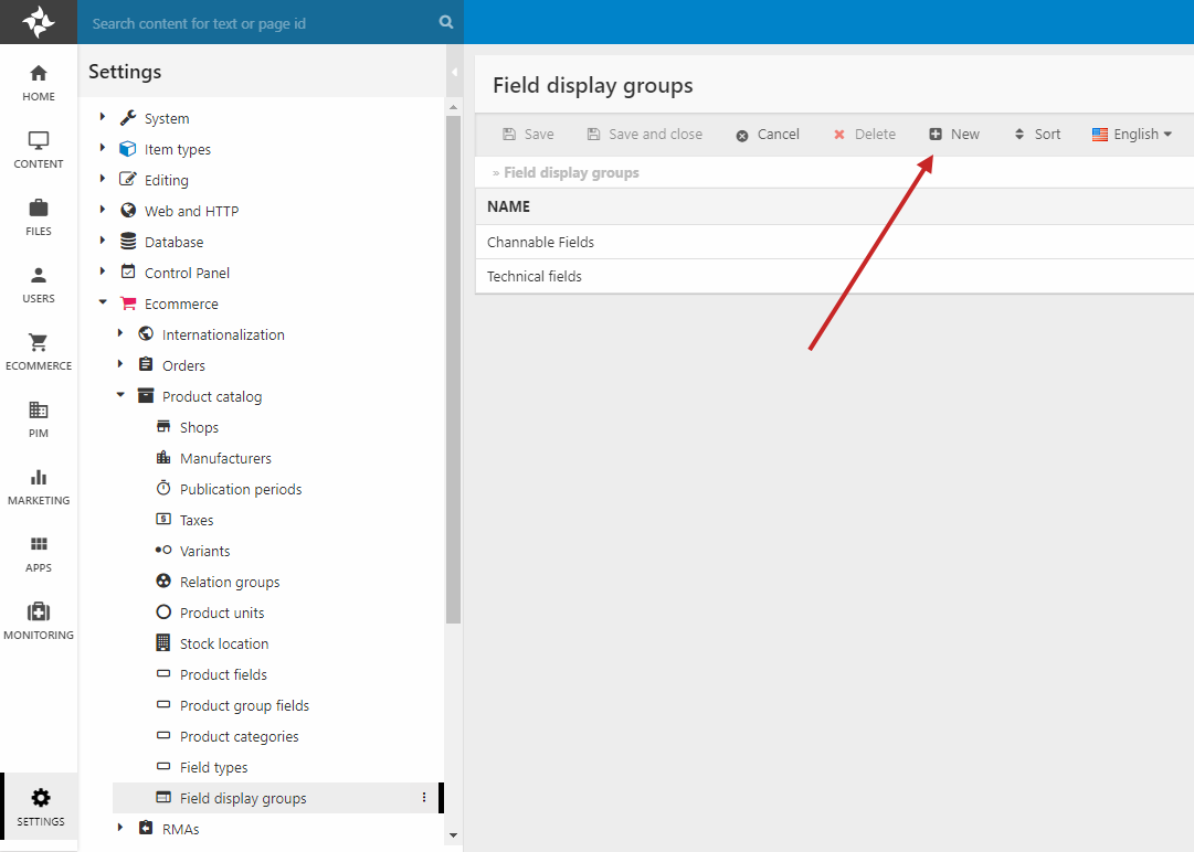 - Go to Settings > Ecommerce > Product Catalog > Field display groups