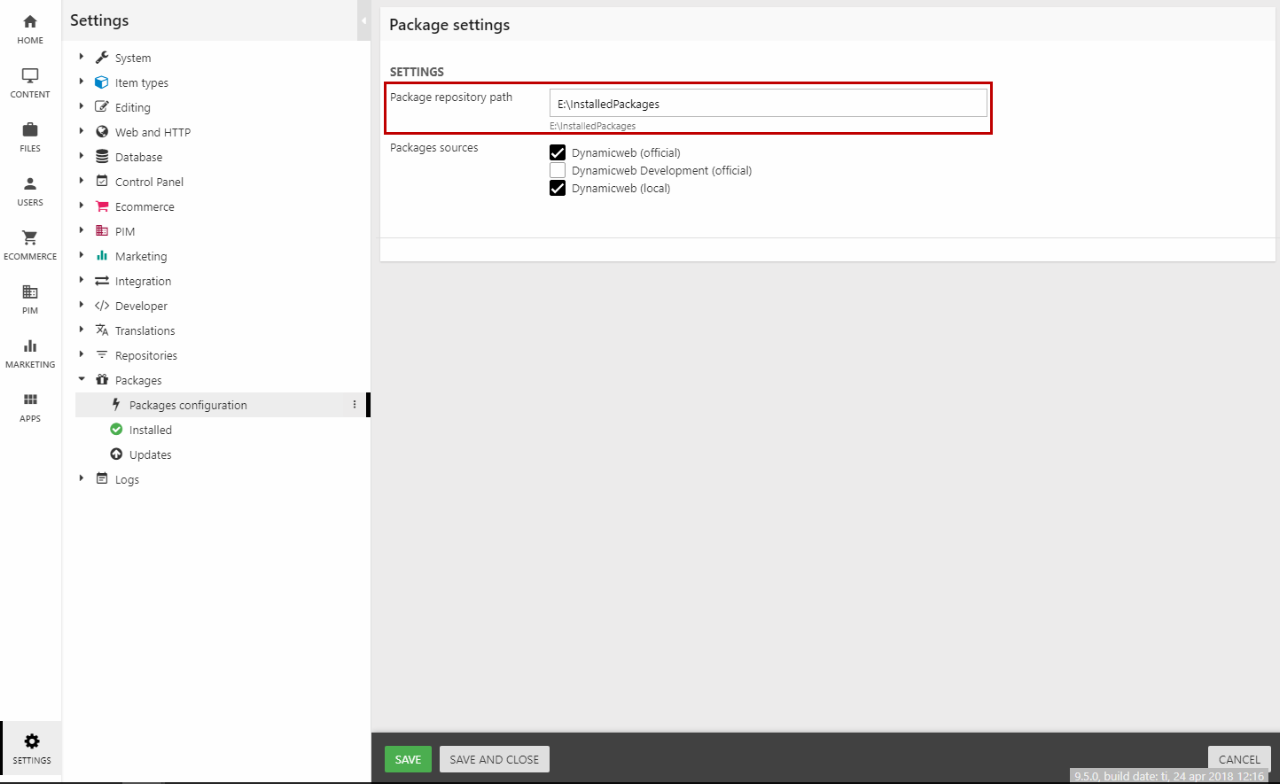 - In the solution Files folder, path+file \Files\System\Packages\NuGet.xml must exist. If it is not there, it can be obtained from the Dynamicweb application: \Admin\Update\Files\System\Packages