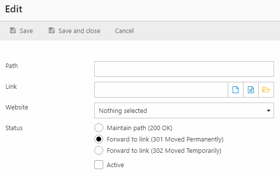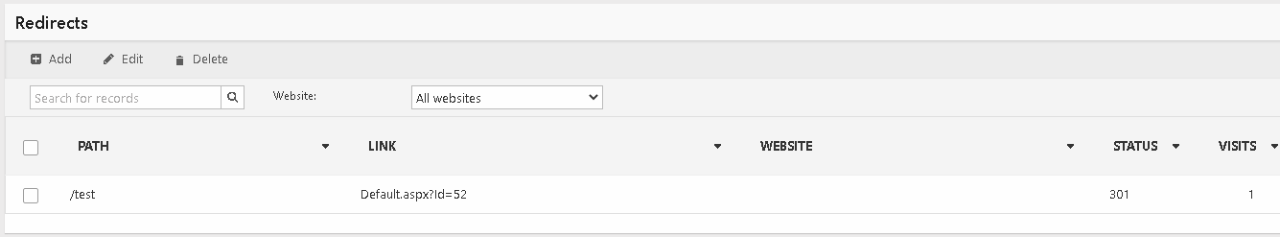 To add a redirect click Add in the toolbar and configure the redirect (Figure 1.2).