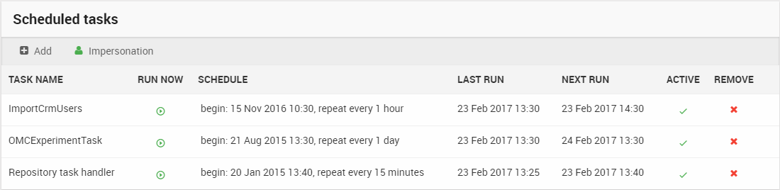 The following scheduled task add-ins are available on an up-to-date Dynamicweb solution: