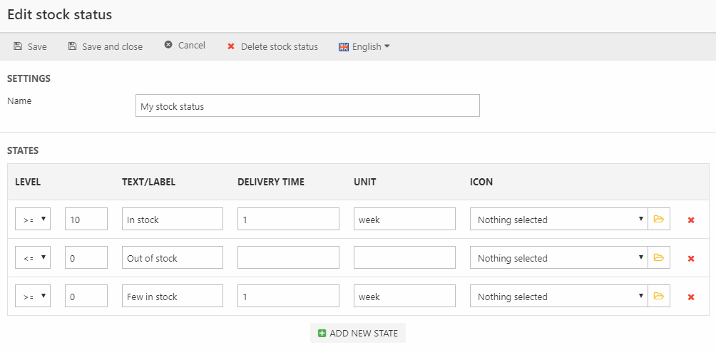 - For each state, set a label and define when it is used – you can also set a Delivery time, a unit and an icon