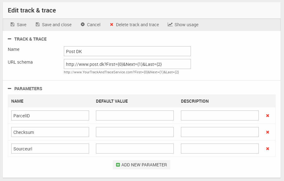- Provide an URL schema – these are particular to your delivery service, and you should contact them if in doubt. The URL schema should contain a number of parameters, which are unique to each delivery.