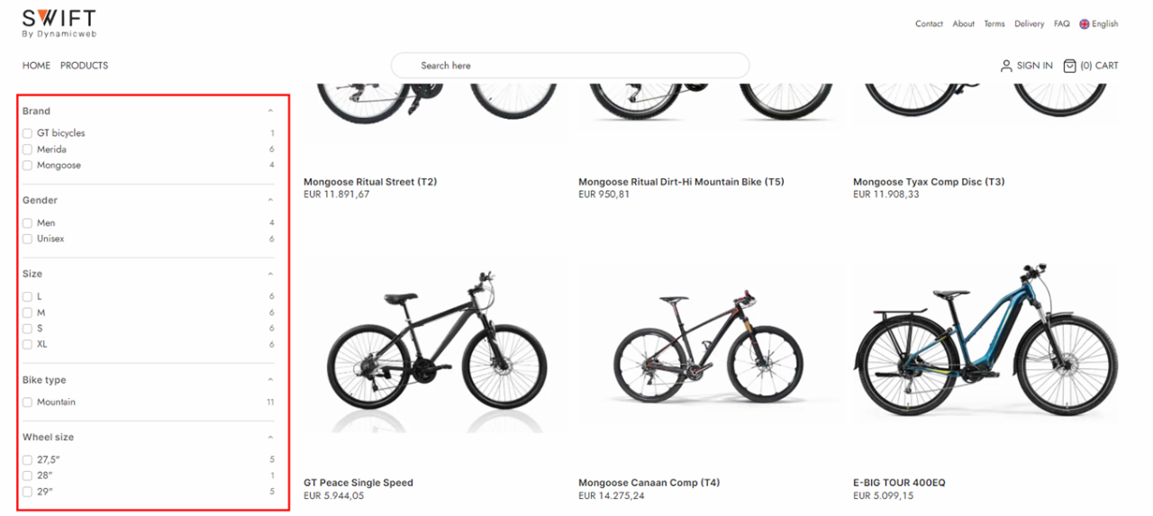 • Dynamic Facets are generated based on query string parameters, either from a list of pre-created facets or in a fully dynamic manner