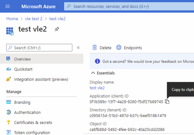 - After the application has been created, you will be navigated to Application Overview page. Copy the Application ID and store it somewhere, as you will need it when setting up the Dynamicweb login provider.