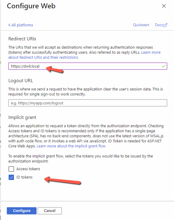 - Enter your solution url – remember it should be https – and select ID tokens as the authorization method (Figure 3.3)