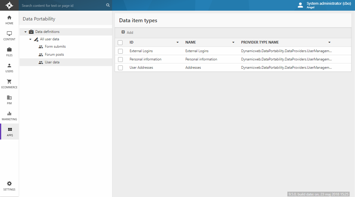 Dynamicweb ships with a set of data providers which can extract various types of data related to a user: