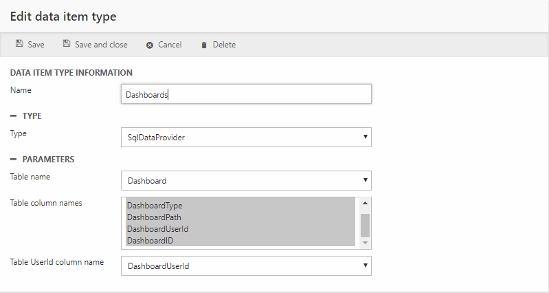 A data item type is a configuration which uses a provider to extract data associated with the user from the solution.