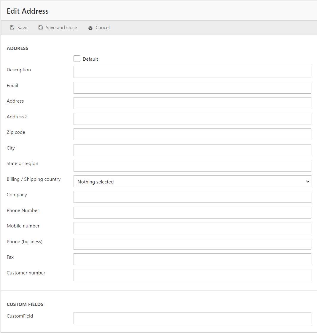 Custom address fields are used to hold information for which there is no standard field – pretty simple, actually. This can be necessary when working with address data from a region with a different standard address format than the one natively employed by Dynamicweb.