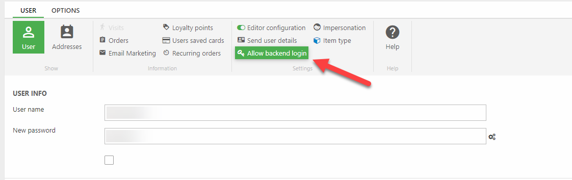 Administrators and Admins have backend access by default – for other user accounts you must explicitly toggle backend login using the ribbon bar button in the user details view (Figure 1.1).