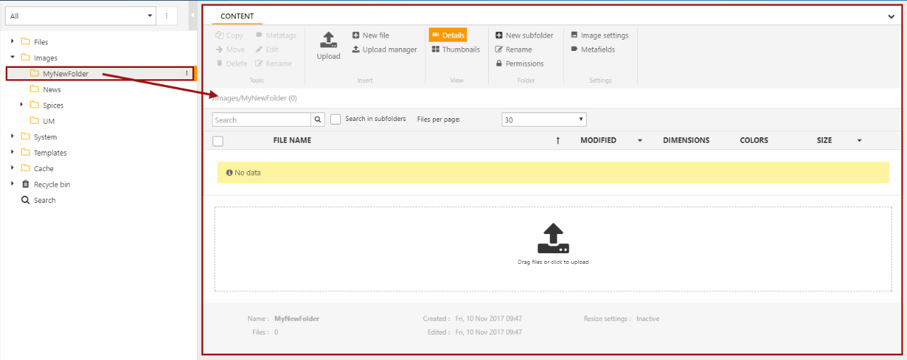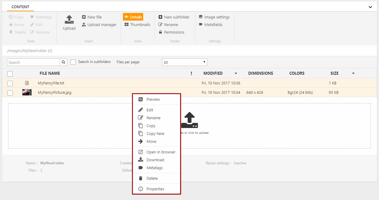 The File manager in Dynamicweb enables you to save and structure your images and other file types in an easy and intuitive manner.