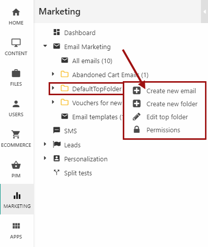 - In the Marketing tree, fold out the Email Marketing area (1) (Figure 18.1).
