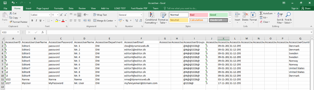 If you like working in Excel, you can also export a set of users to Excel, edit them, and then import them to your solution again.