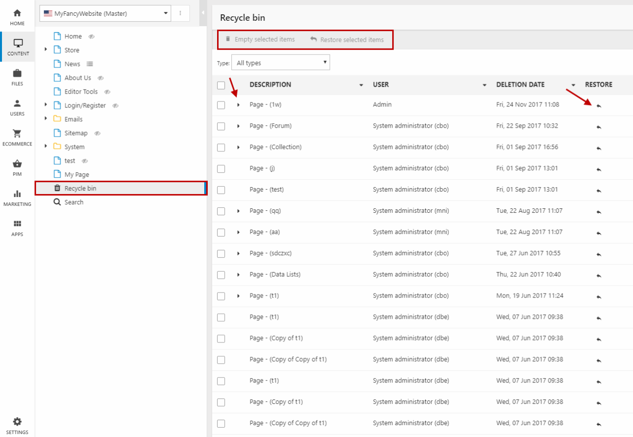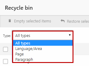 When clicking the Recycle bin tool, you are shown a list with all deleted items (Figure 7.1).