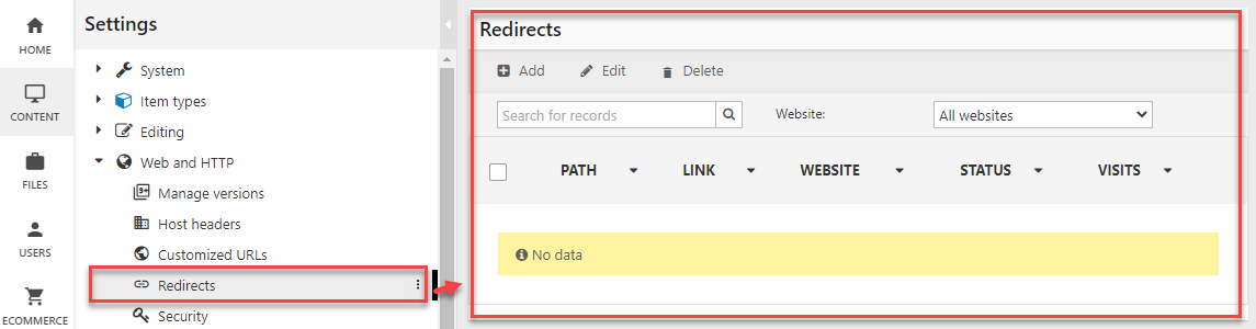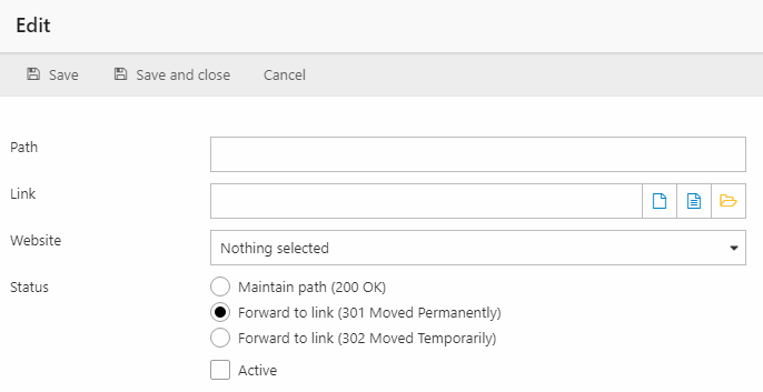 - In Path write the old address – without the website URL – like this /api-docs/Dynamicweb.Analytics