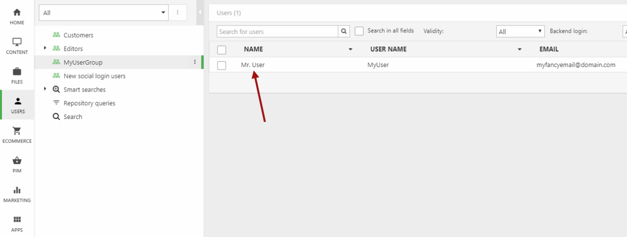 When you are done, click Save and close. You are redirected back to the user list of the user group, where you can now see the new user (Figure 14.3).