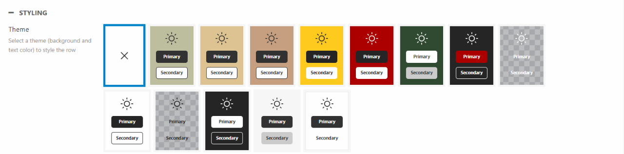 The styling section only controls the theme of the row. This is mainly used to choose the style of the row but is also relevant for other row settings such as Background.