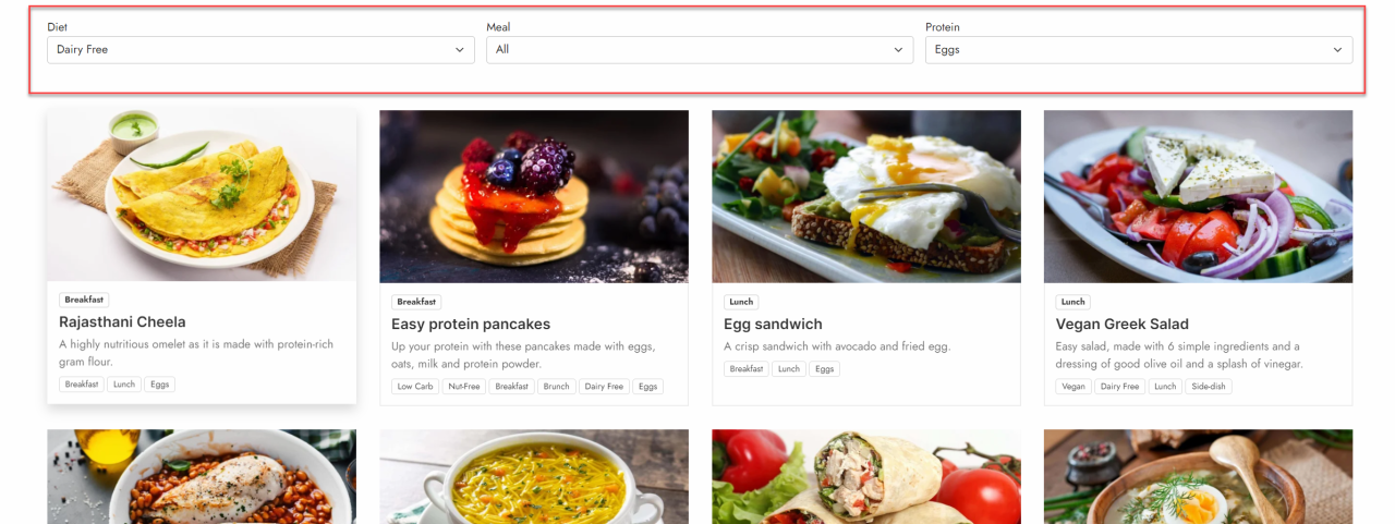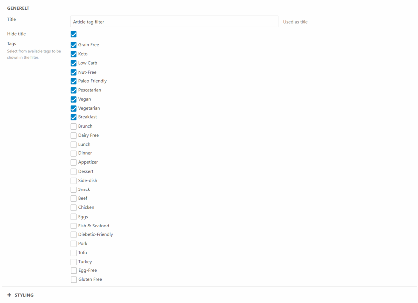 The tags you want to use on your articles can be structured in some different ways. You can either place all tags in one big container or, which will be preferable, place tags in collections based on their type. If we keep the cookbook example mentioned above, you could divide the tags into smaller collections, called “Diet”, “Meal” or “Protein”. Here, as an example, “Protein” could contain tags like “beef”, “chicken” or “eggs”. At this point this sounds a lot like the categories we have explained above. However, the big difference is that tags can be placed across categories. This means that if a user wants recipes with the tag “egg”, they will be shown recipes from across the categories, with the tag "eggs". This could be breakfast omelets, pancakes, or an egg sandwich for lunch.