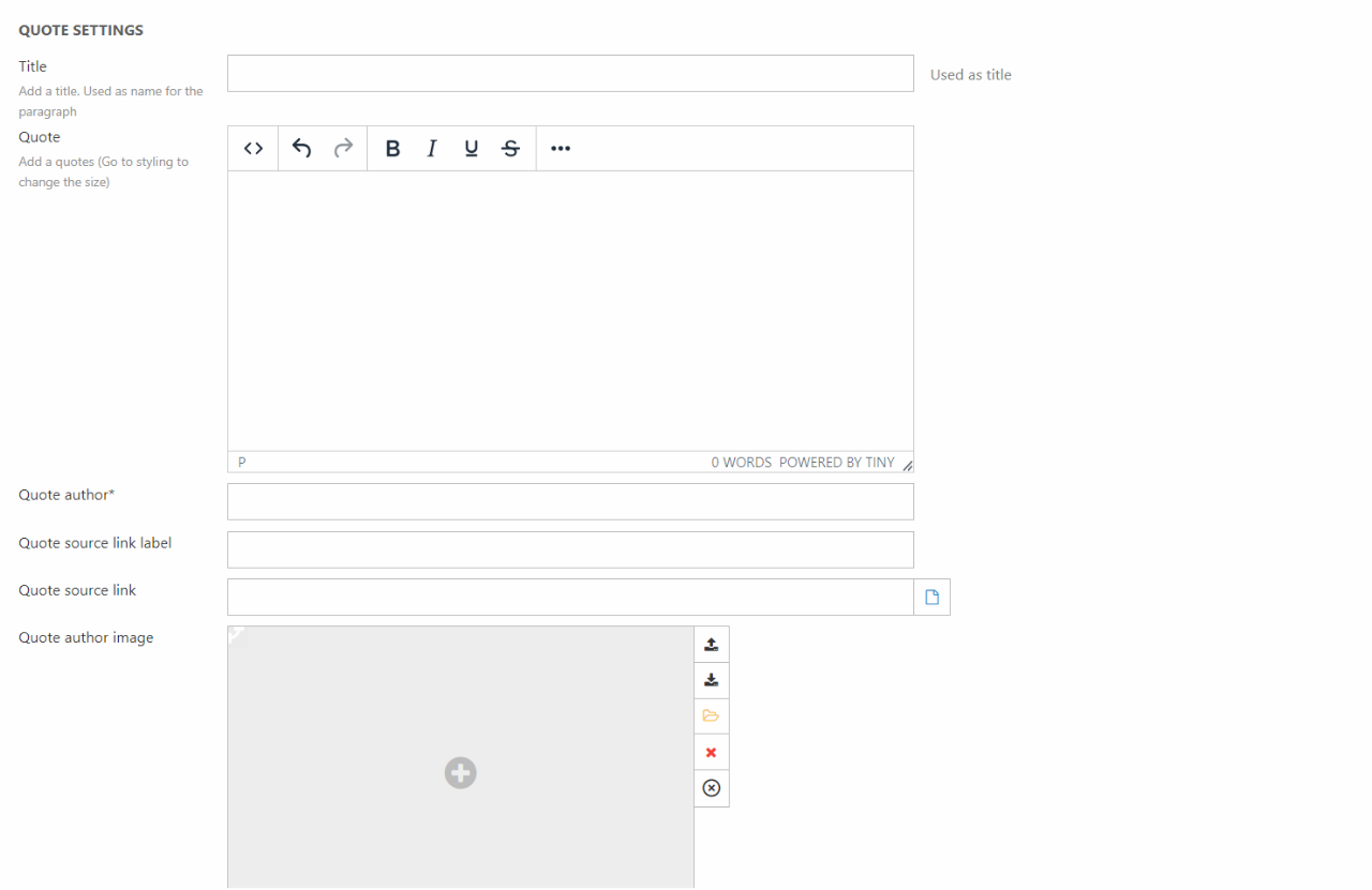 The block quote column is a way to highlight and style a quote. It is especially helpful when working with our articles, as it makes it easier to highlight words from the article in a stylish way.