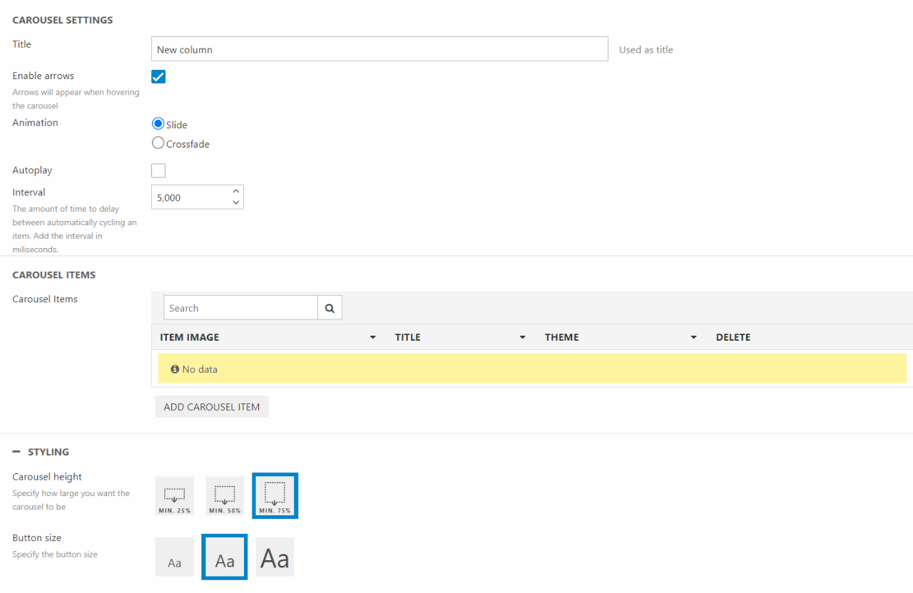 The accordion column comes with the configuration options shown on (Figure 2.2).