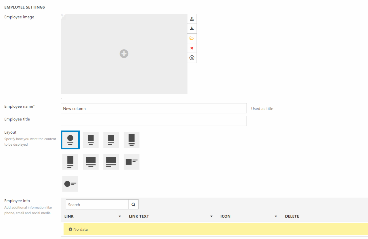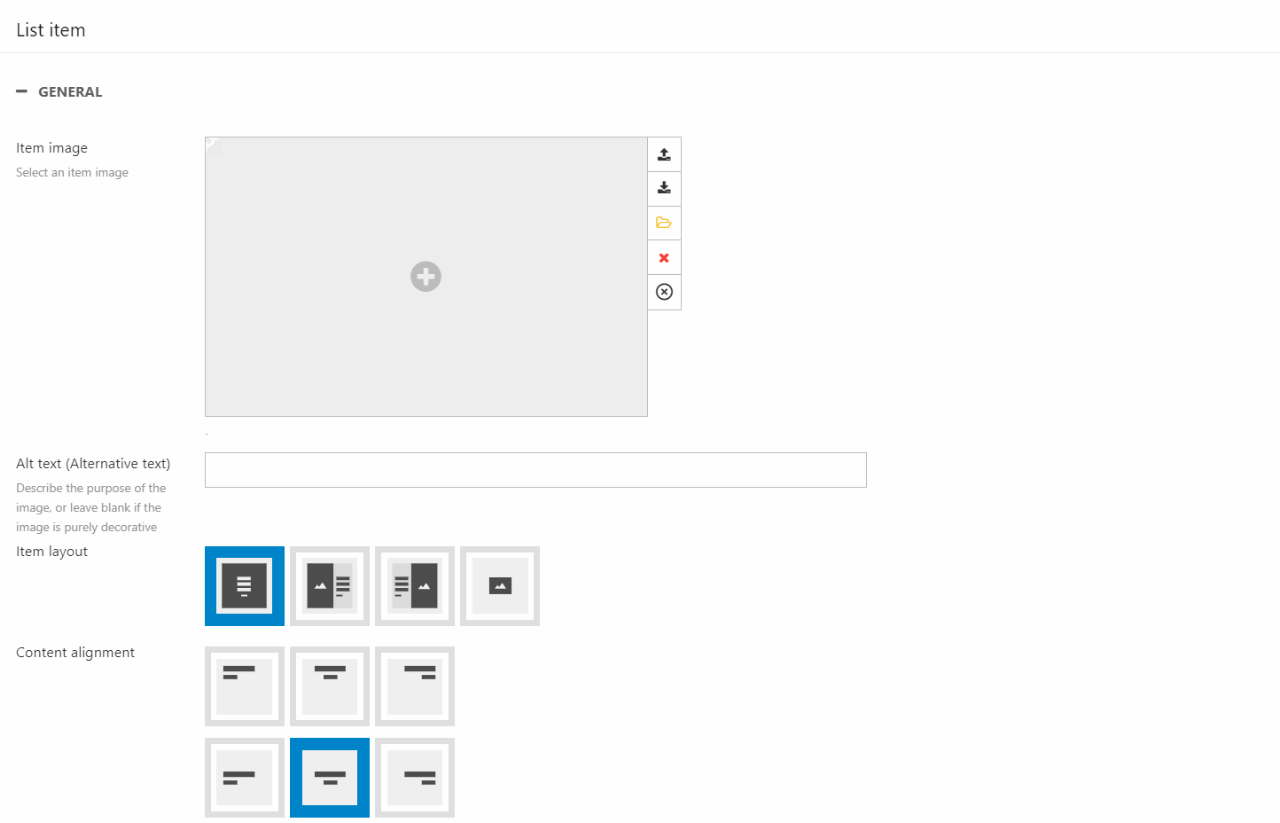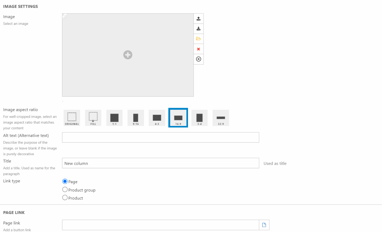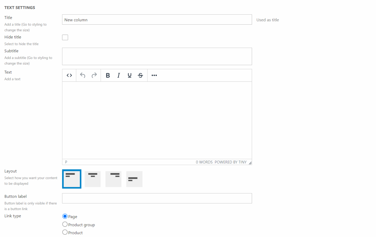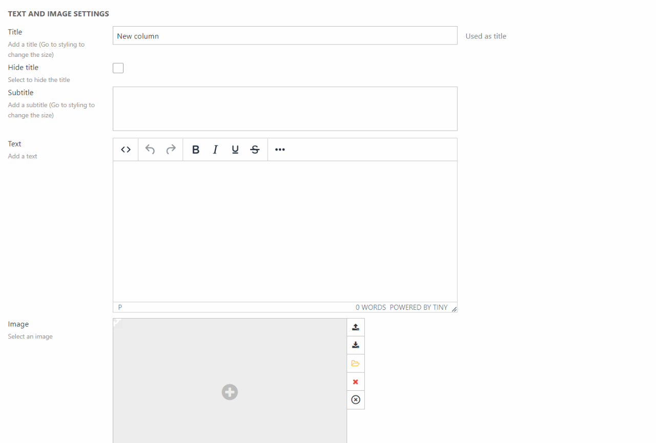 The Text and image column is a content type typically used to create text-heavy content, e.g. blog posts, newsletter sections, case presentations, etc.