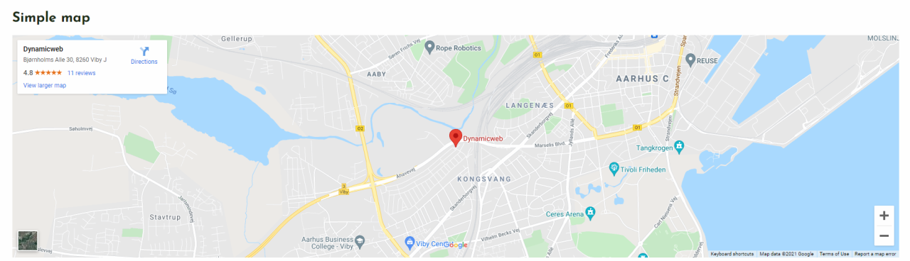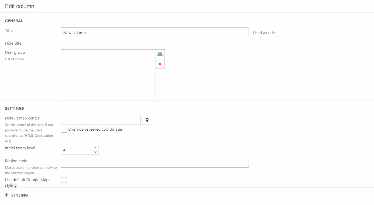 The simple map has no customization options and only lets you add one location. The upside is that you can use this column without a Google API.