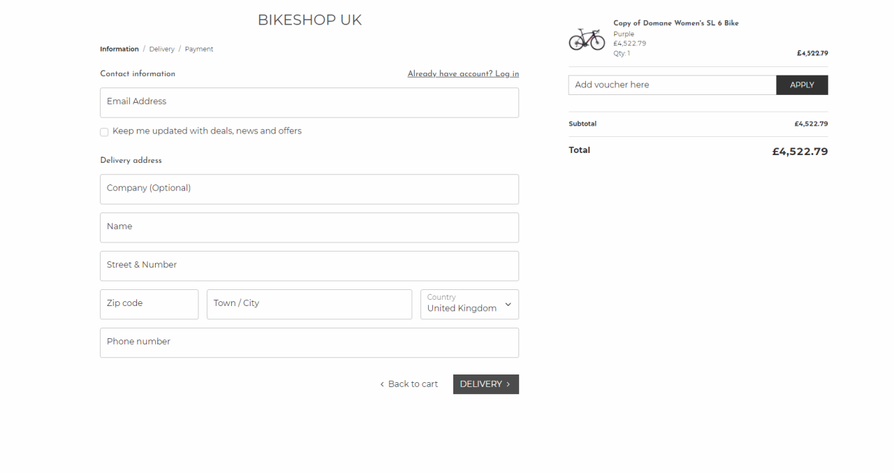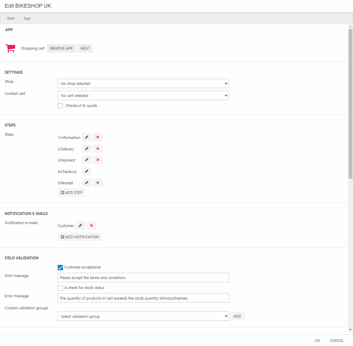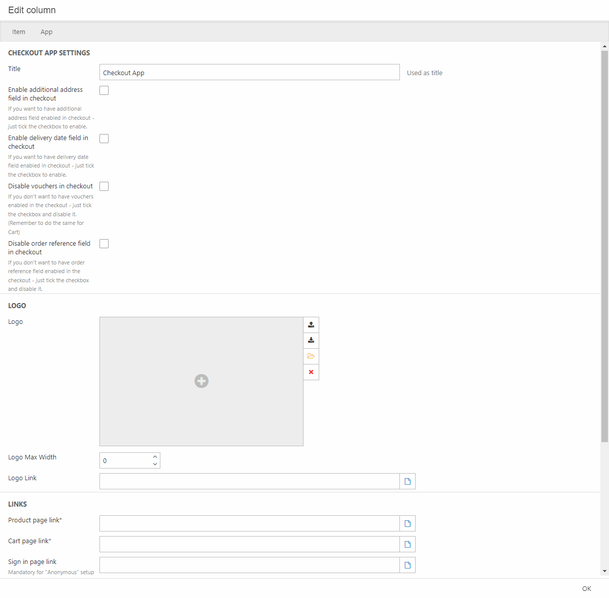 The Checkout App column will handle all the different phases during the checkout process: Information, Delivery and Payment.