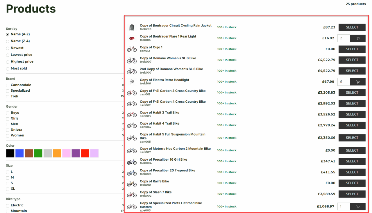 As standard on Swift the product list is displayed in a grid view.  If you want a more B2B based product list, the product list – compact view column might be ideal. This allows you to list your products and lets the customer add products to cart without entering the product details page.