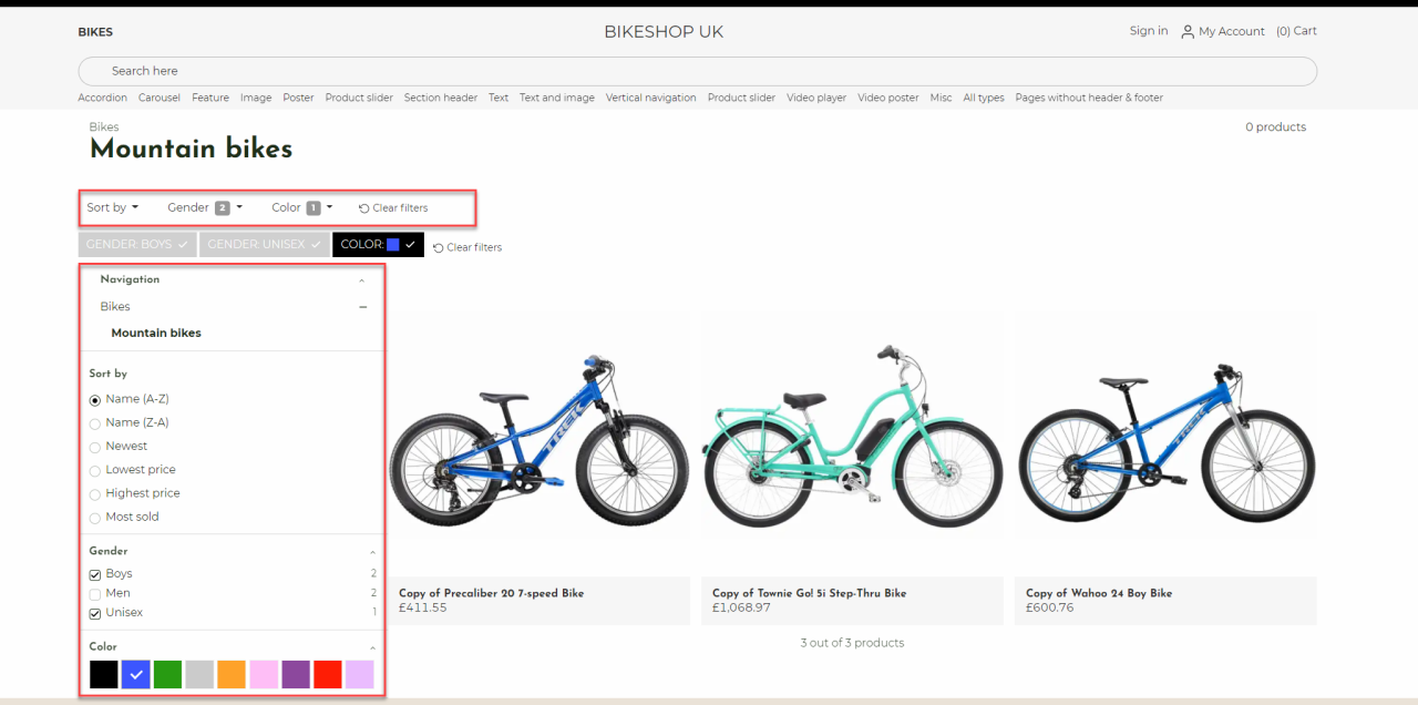 In this article we will take a closer look at the columns available to you for creating the following ecommerce pages: