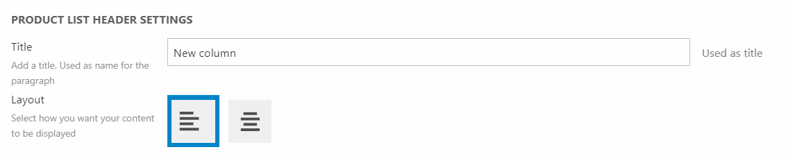When you add this column to a page you will see the settings in Figure 6.2 – they allow you to specify a layout (left-aligned vs centered).