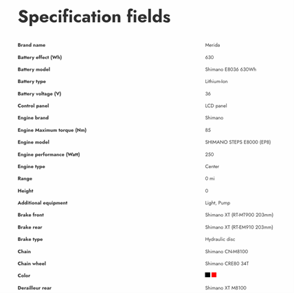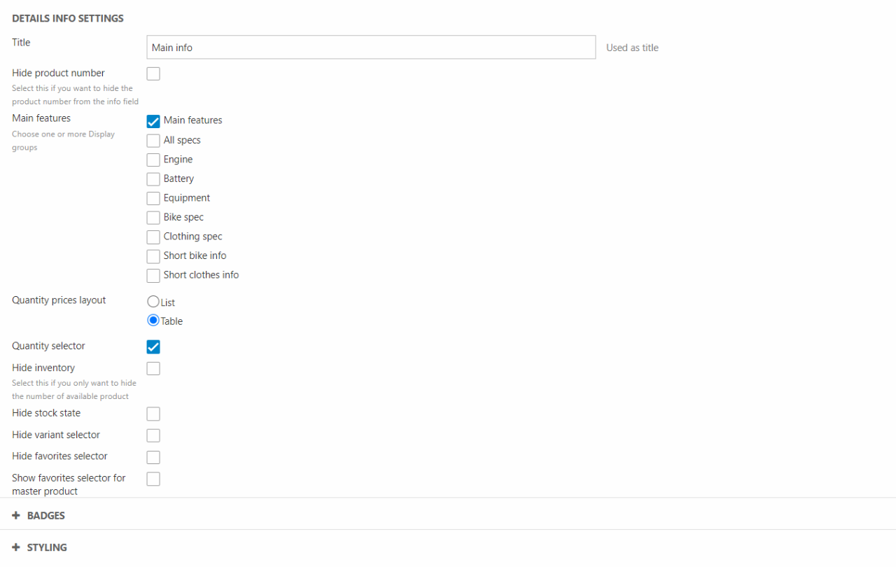 The product specification column is used to render detailed information about a product – from either product fields, product category fields, or field display groups.