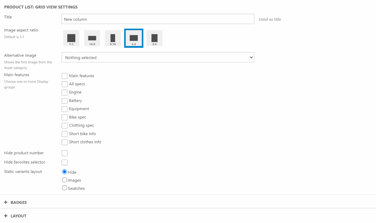 • Set the static variant layout - if the product has any variants, this is where you choose the behaviour