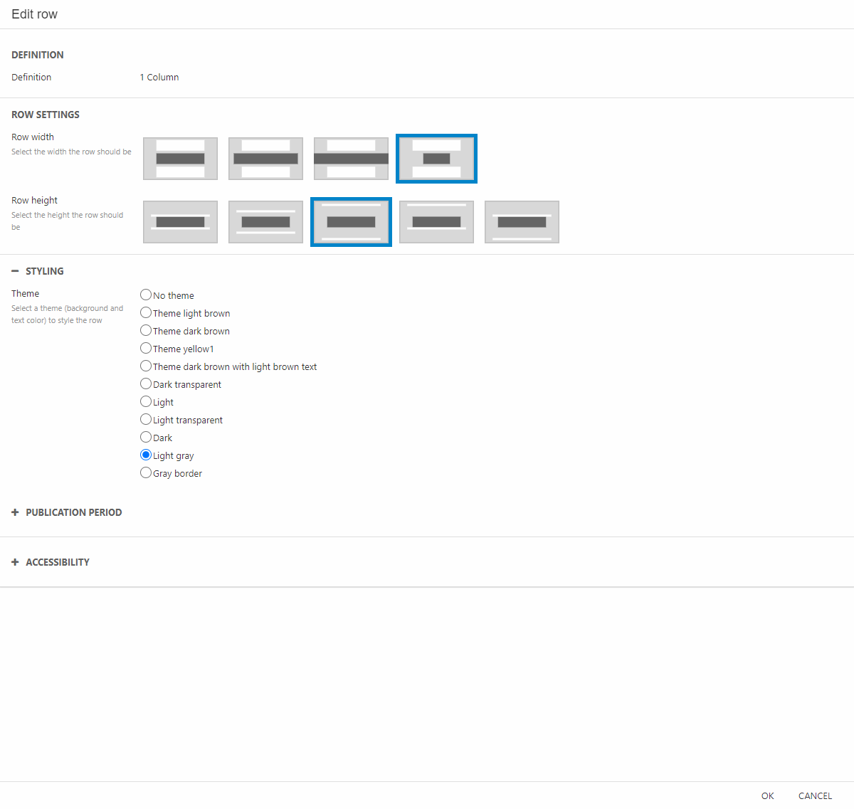 - Add a section header column to the row and choose a theme.