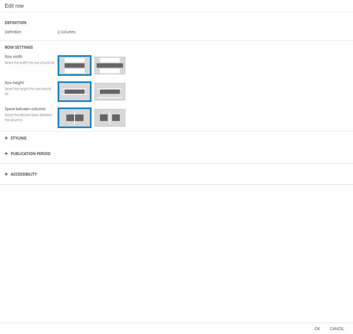 With the right set of presets, an editor will simply drag a preset onto a page, make some minor modifications, and… that’s it! Great looking content in only a tenth of the time it would take them to set it up from scratch. If for some reason the customer does not have an appropriate preset available, they can use rows & columns to create content from scratch – but we do strongly recommend that you help them out by providing them with presets matching their business needs and line of business.