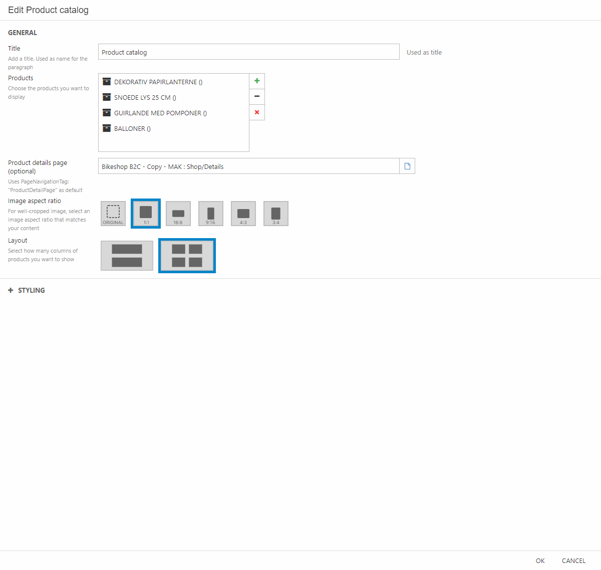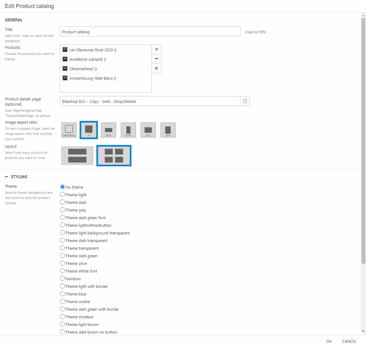 - Set the image aspect ratio to 1:1 and the layout to two columns per row.