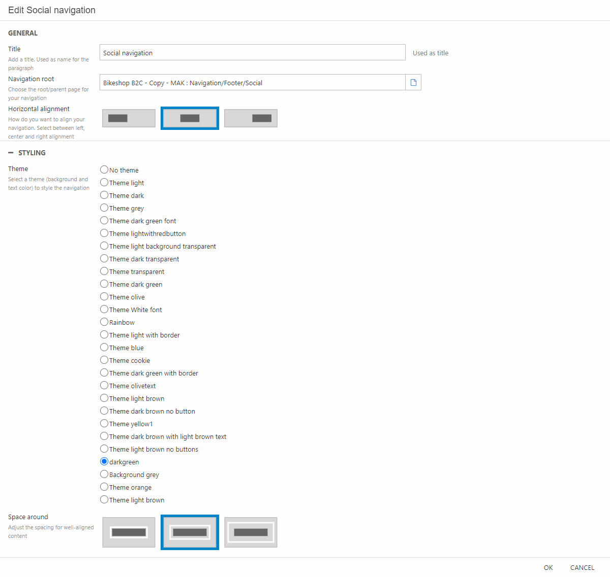 - Again, for styling the main thing to focus on is “Space around”. In this is example we’ve chosen maximum space around.