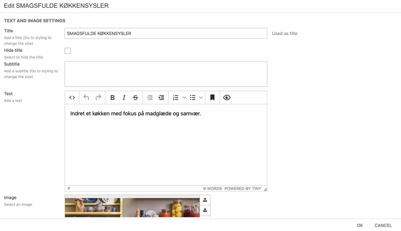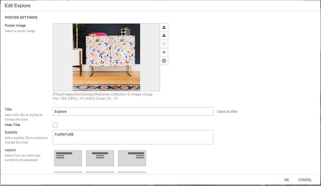 - Choose a suiting image. If it’s a tall image, remember to set the focal point.
