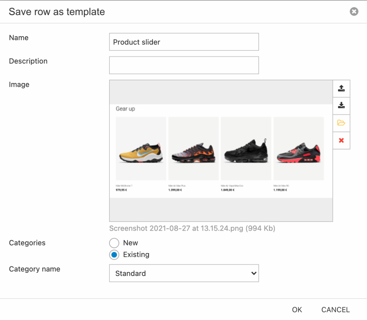 - Hover over the row and click Save row as template