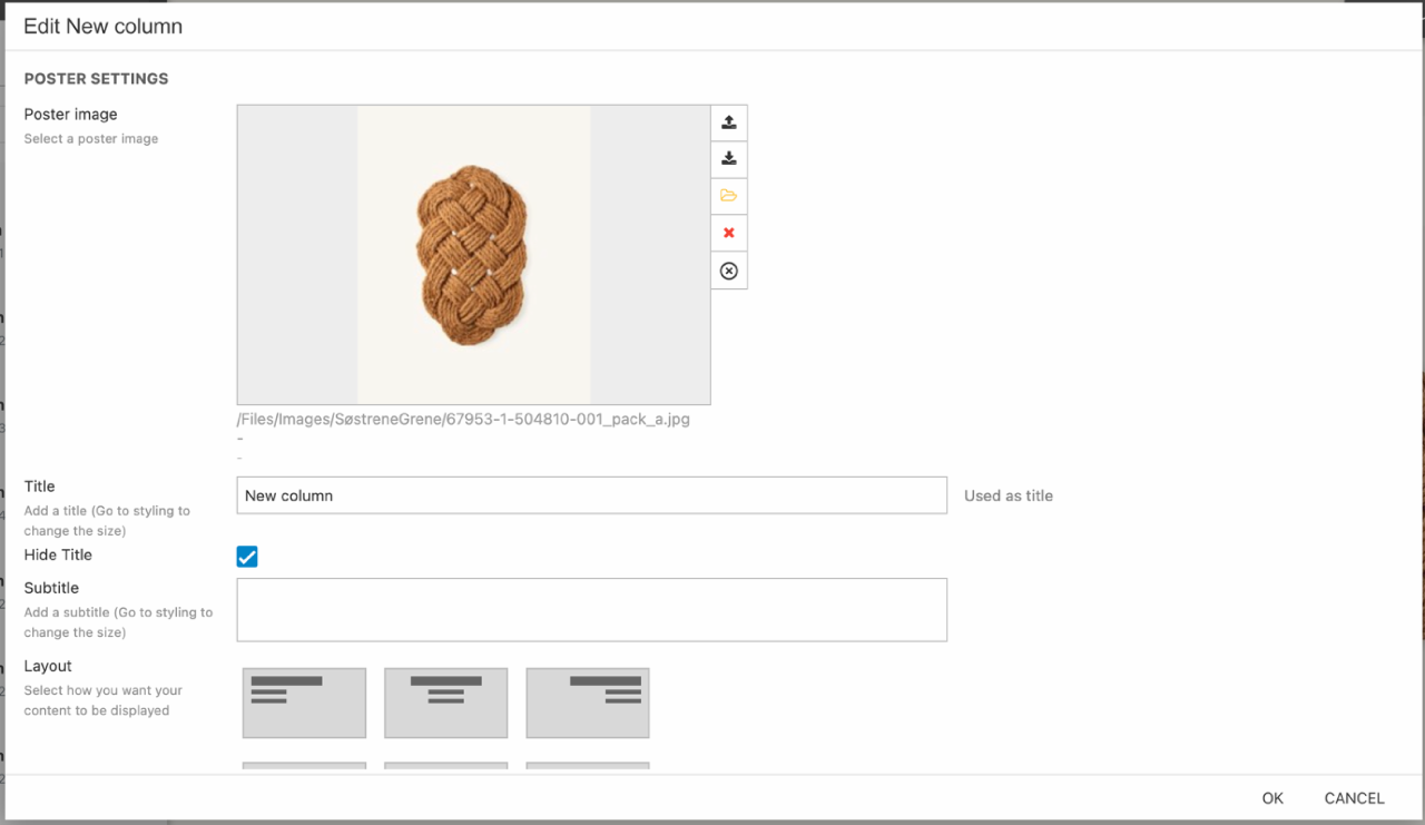 - In column 3 add a poster column – then configure it (Figure 4.1):